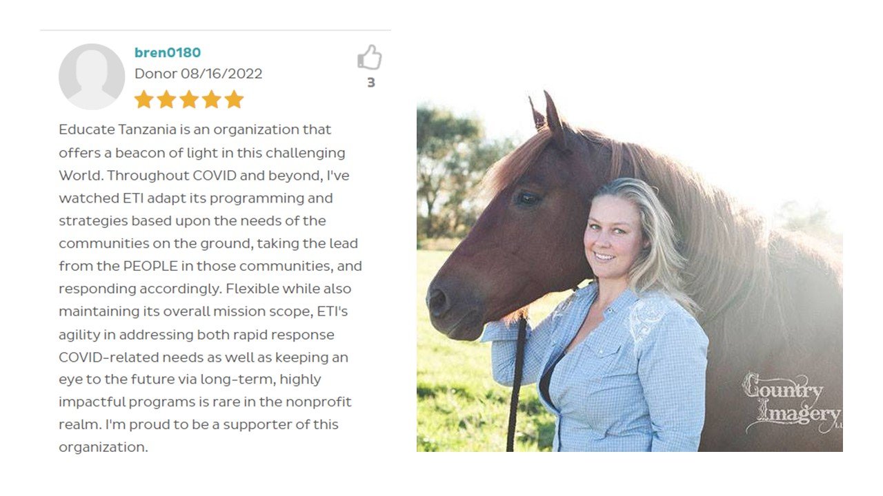 There are 1.8 million nonprofits in the U.S. Educate Tanzania is in the top 1%. See what our supporters have to say ~ be inspired.